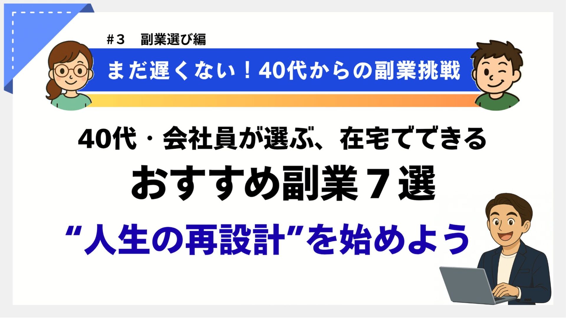 まだ遅くない!40代・会社員のおすすめ副業7選|在宅で“小さく始めて”“大きく育てる”現実的な選択